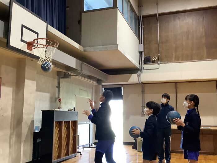 グループ対抗・バスケットボールシュート大会を企画してくれました。結果は保健グループさんが優勝でした。おめでとう!手づくりのメダルのプレゼントもありました。