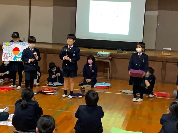 冬休みにそれぞれ作ってきた作品や、自由研究などを1人ひとつずつ皆の前で発表しました。