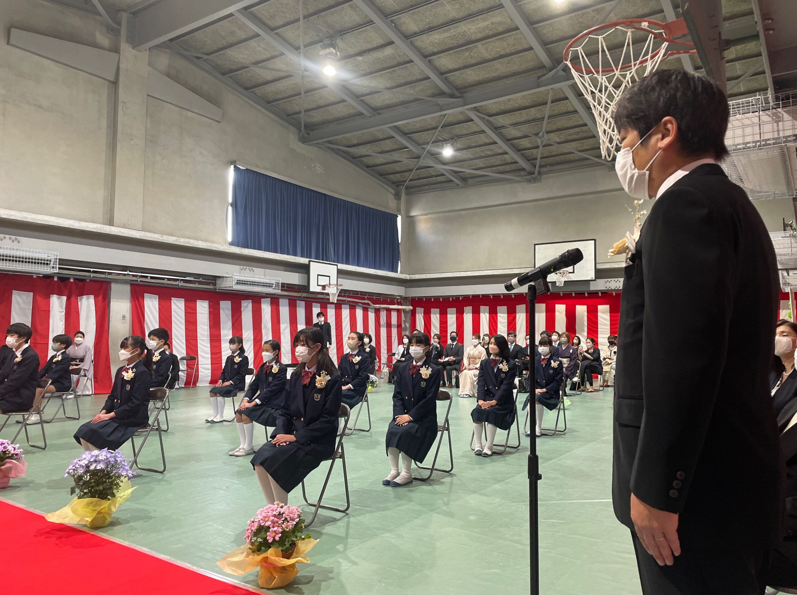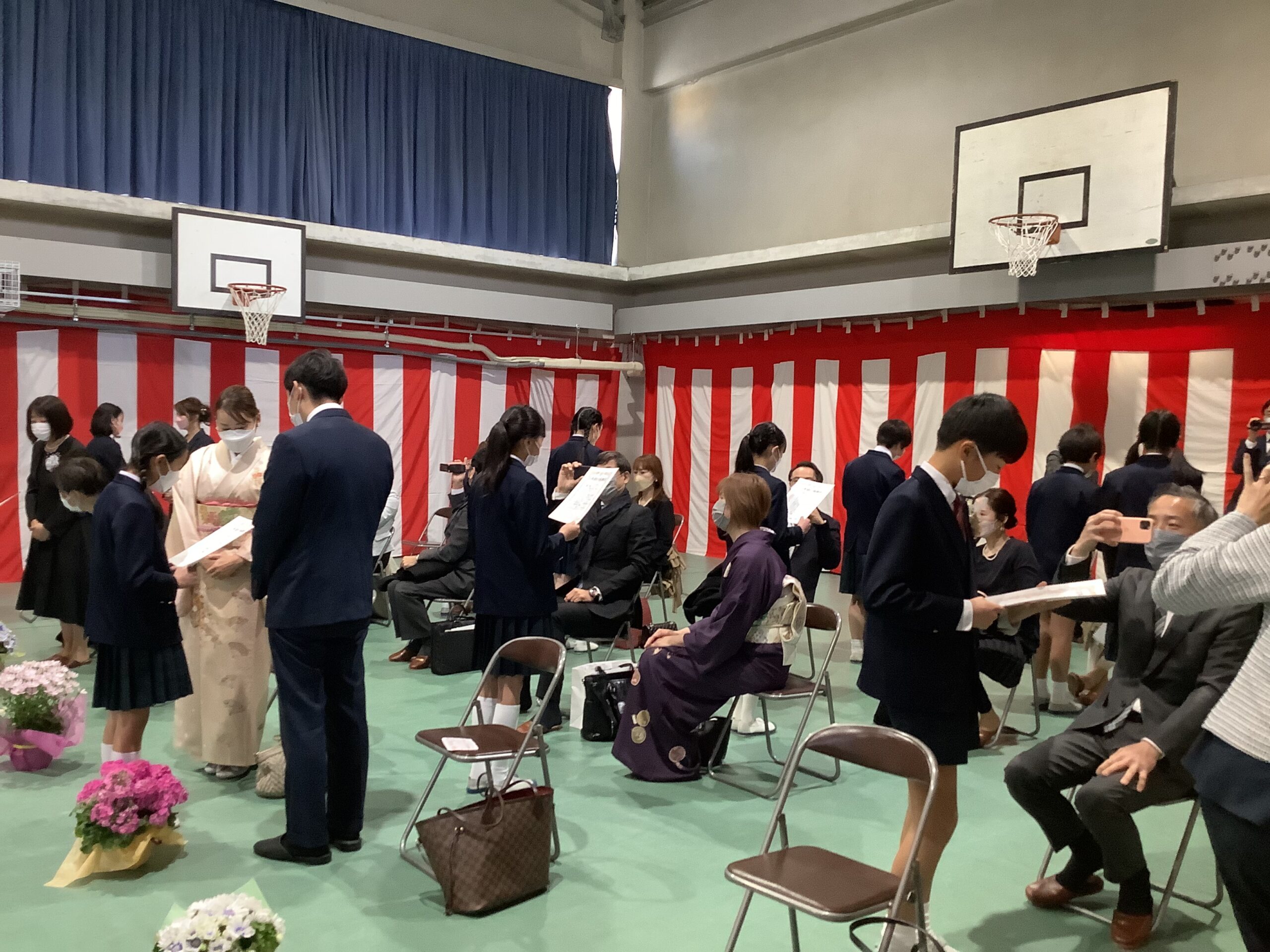 コロナ禍の卒業式。在校生は自宅学習で、保護者、教職員で卒業生の旅立ちを見守ります。