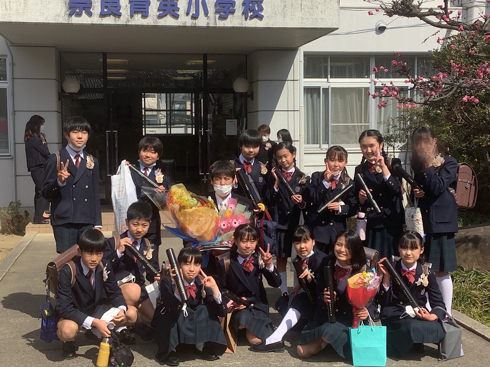 友達や先生との思い出がたくさんつまった奈良育英小学校での6年間。みなさんの新たな門出を教職員一同心よりお祝いし、応援しています。みんな大好きです!またいつでも学校に遊びに来てくださいね!