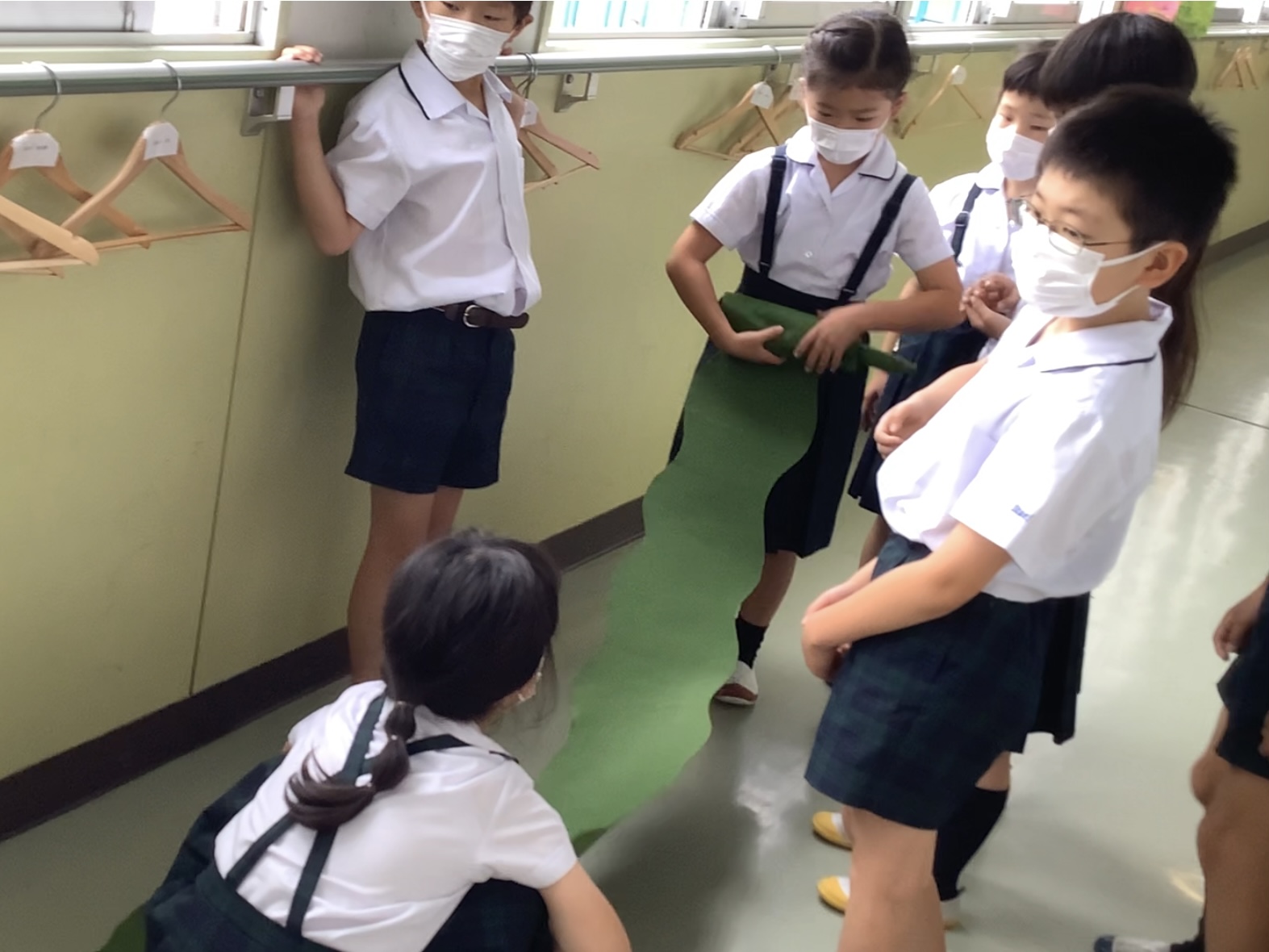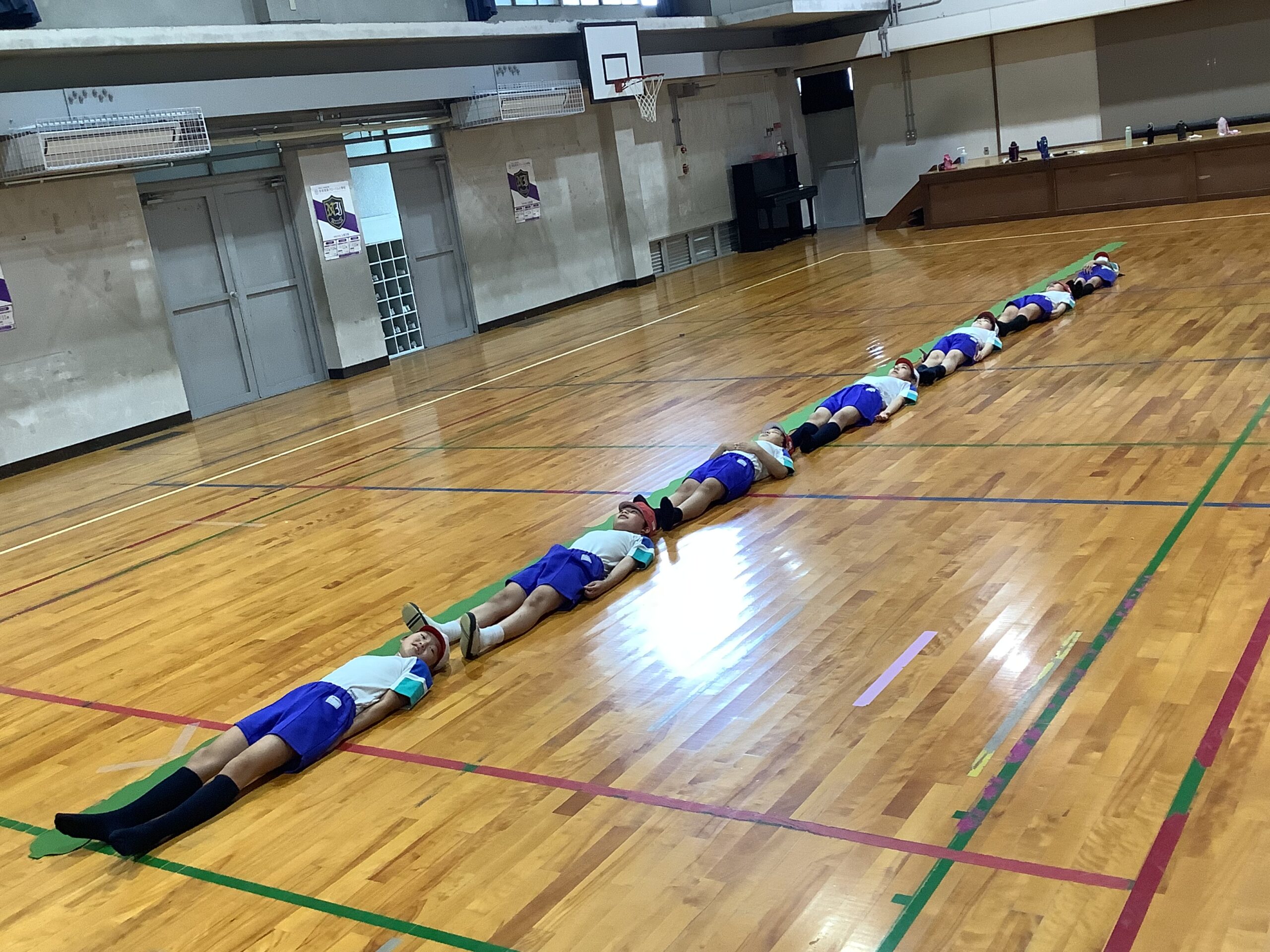 昆布のレプリカを使って、実際の長さも体験しました。教室には入りきらなかったので、体育館や廊下に広げて子どもたちと背比べをしてみました。