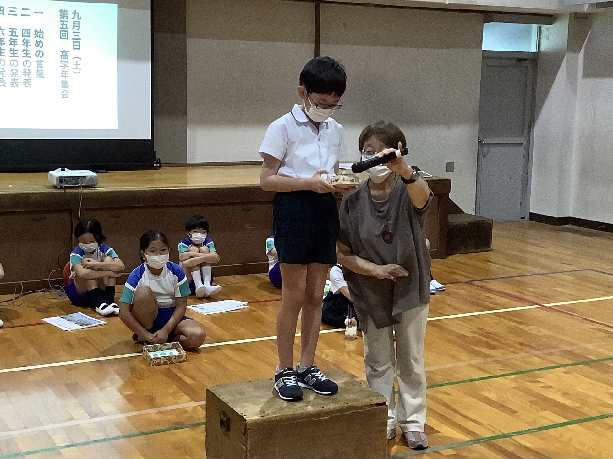 2022.09/05 育英っ子ブログ 高学年集会 2学期最初の高学年集会がありました。 夏休みの作品や自由研究を発表しました。 実習生の先生たちも夏休みの思い出についてお話してくれました。 次回の高学年集会も楽しみです。 次の記事へ 一覧に戻る 前の記事へ