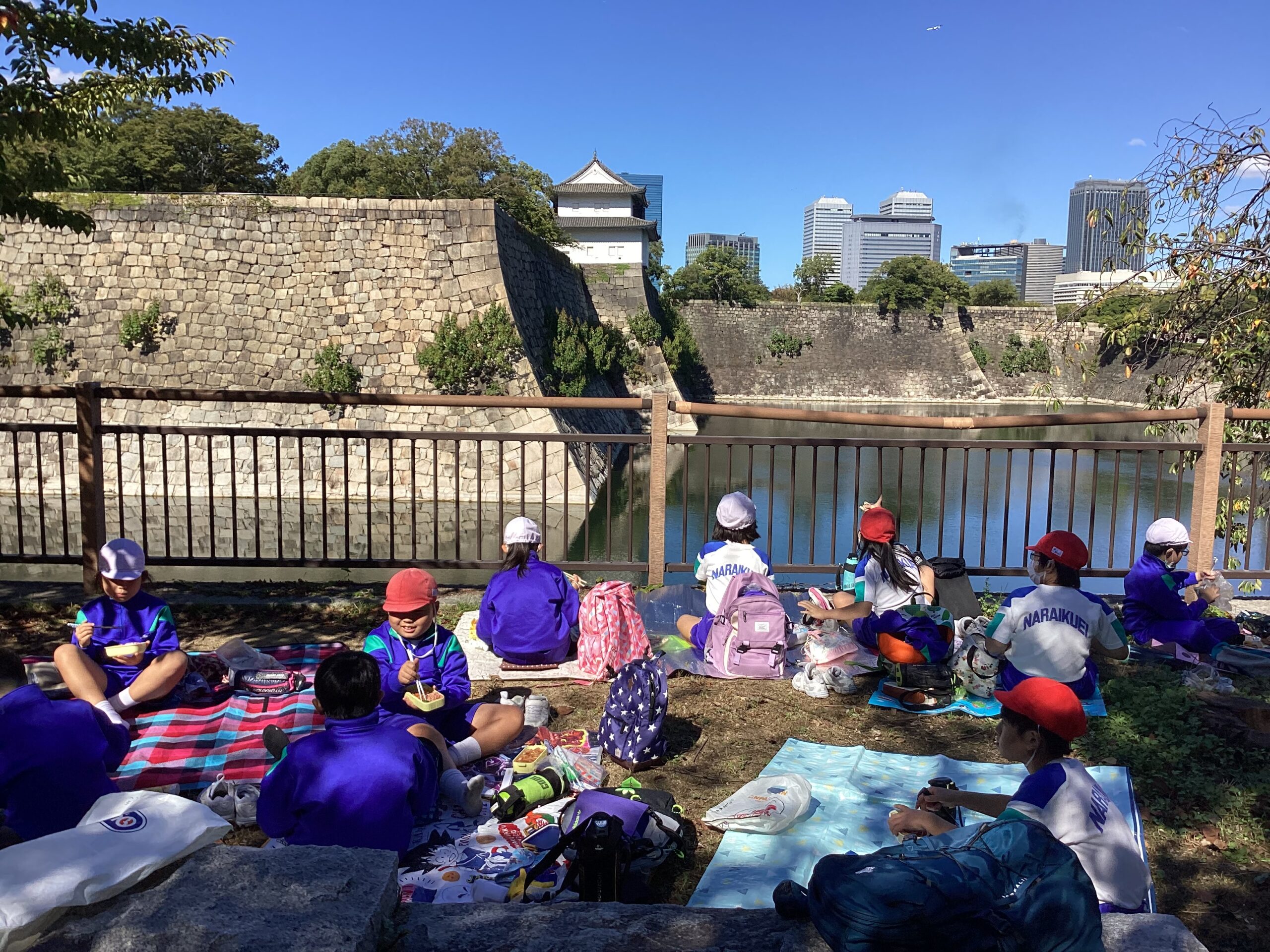 お弁当は、大阪城公園で食べました。みんなで食べるお弁当は、とても美味しかったです。おやつタイムもありました。