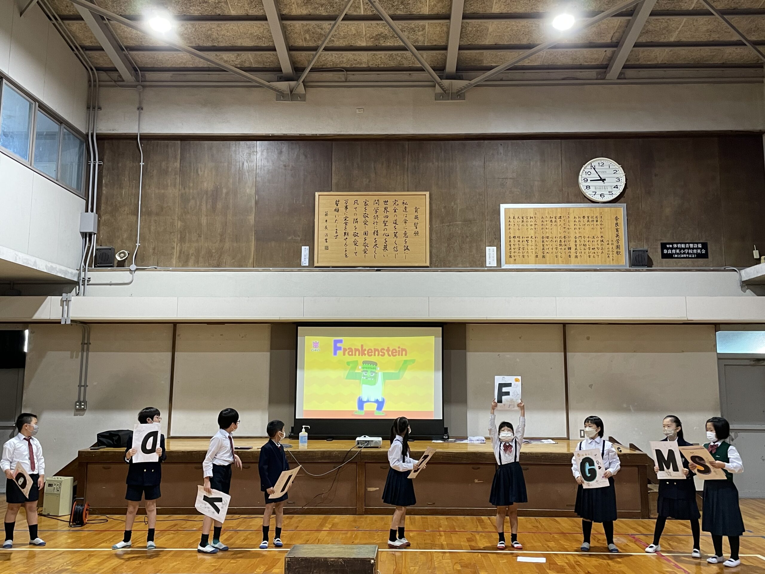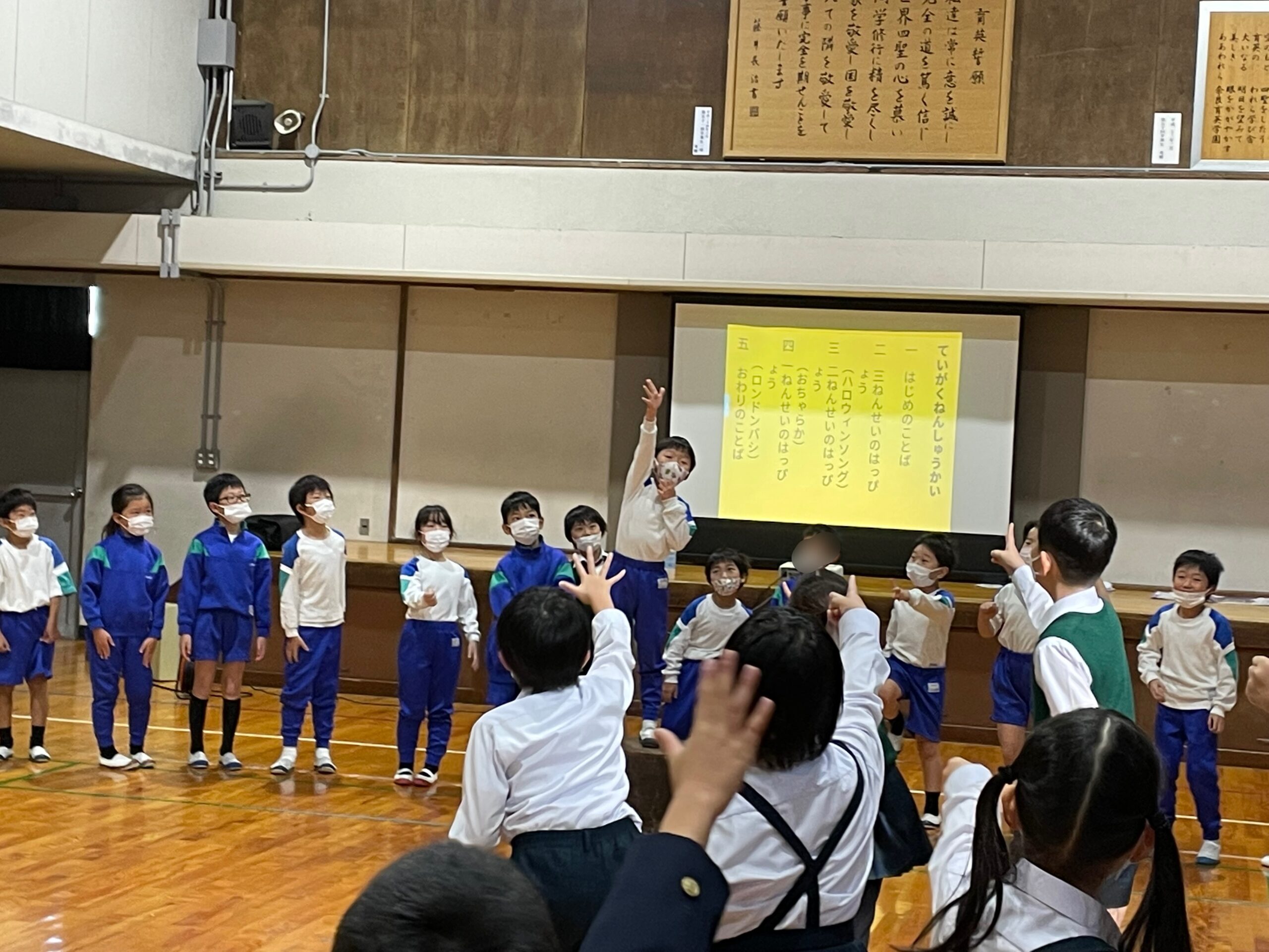 3年生の発表は、ハロウィンソングです。みんなで英語のカードを手作りし英語で歌をうたってくれました♪