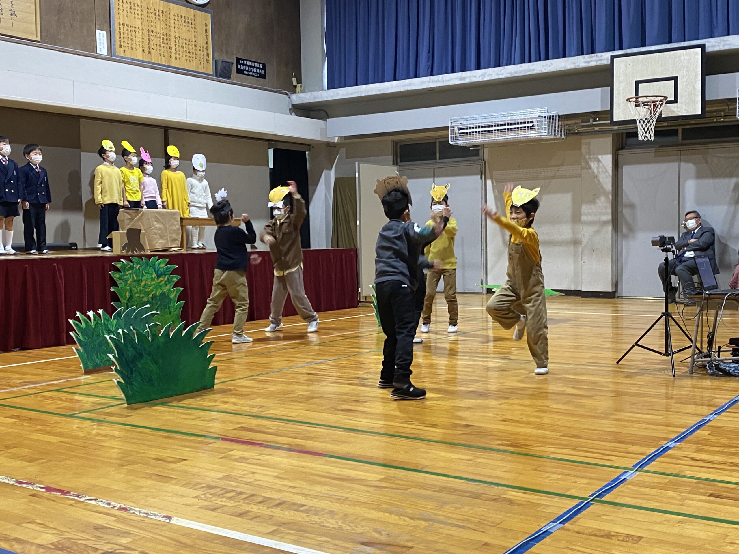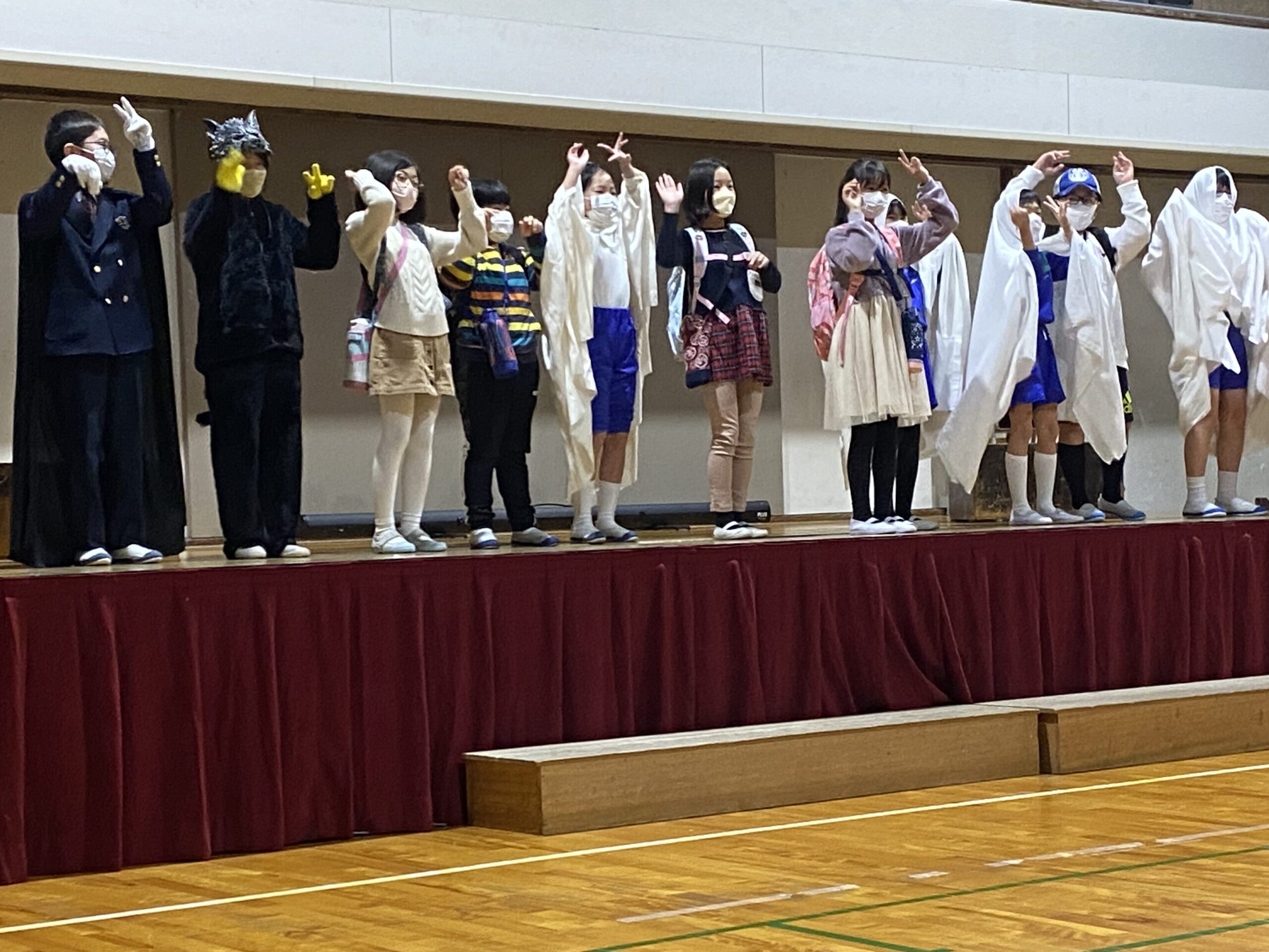 2022.11/26 育英っ子ブログ 学習発表会 今日は子どもが楽しみにしていた学習発表会がありました。 二部制にすることで密を避け、オンラインでなく体育館で開催することができました。 1年生「くじらぐも」 2年生「きつねのおきゃくさま」 3年生「三年とうげ」 4年生「ヒュードロンお化け学校」 5年生「私たちと食料問題」 劇クラブ「神様たちの井戸端会議」 子どもたちは今日まで一生懸命練習に励んできました。 お忙しい中、お越しくださった保護者の皆様ありがとうございました。 次の記事へ 一覧に戻る 前の記事へ