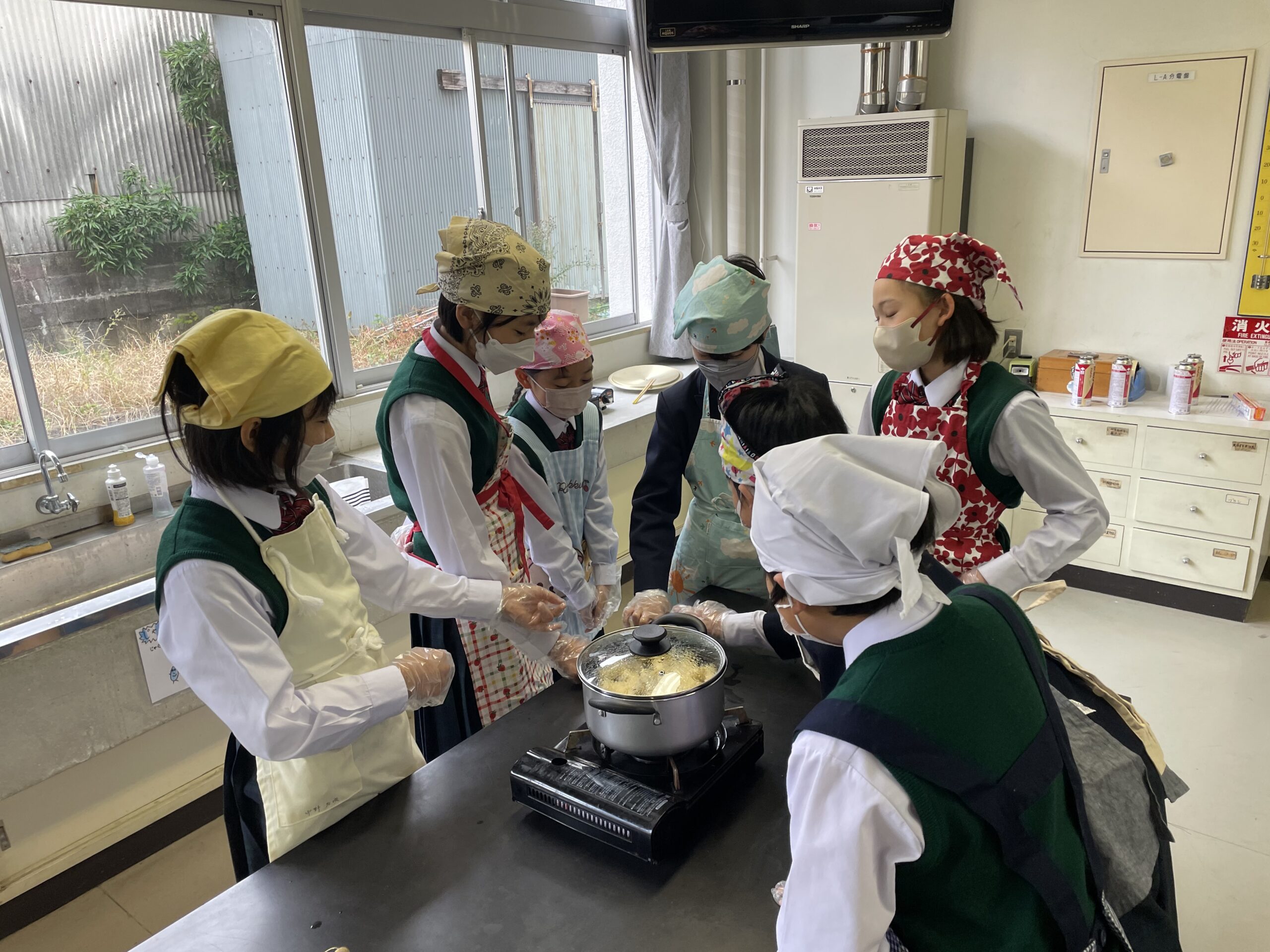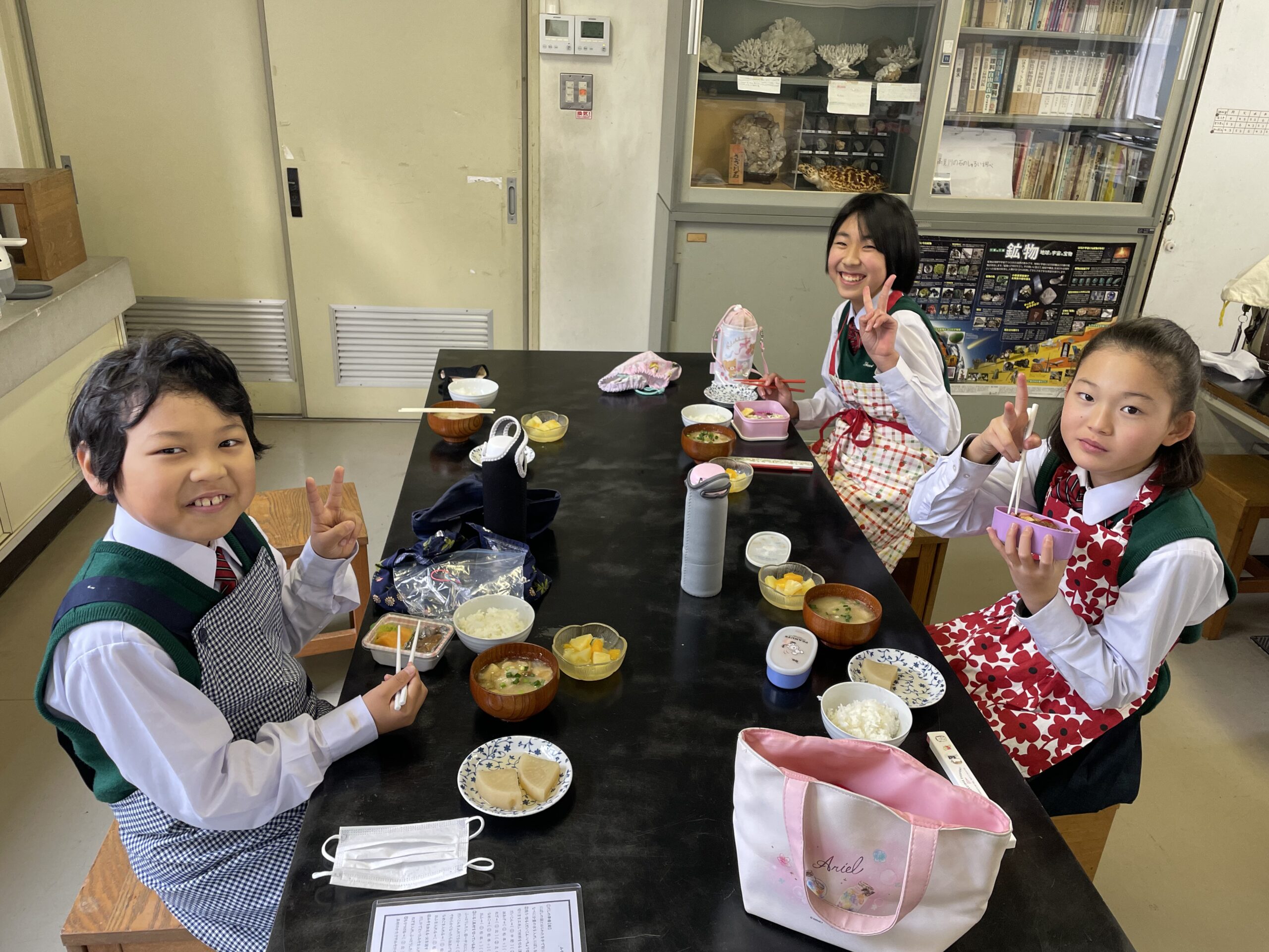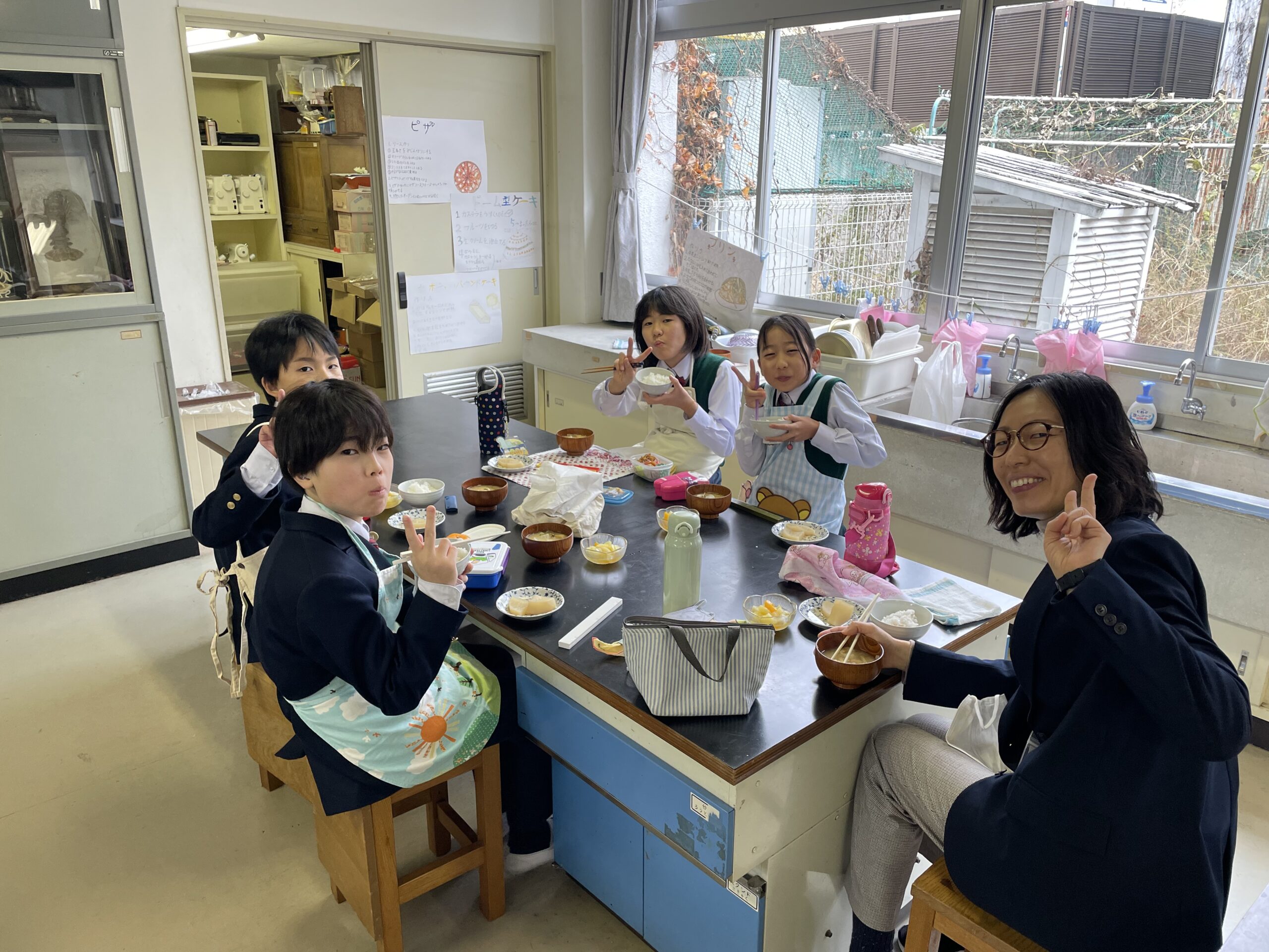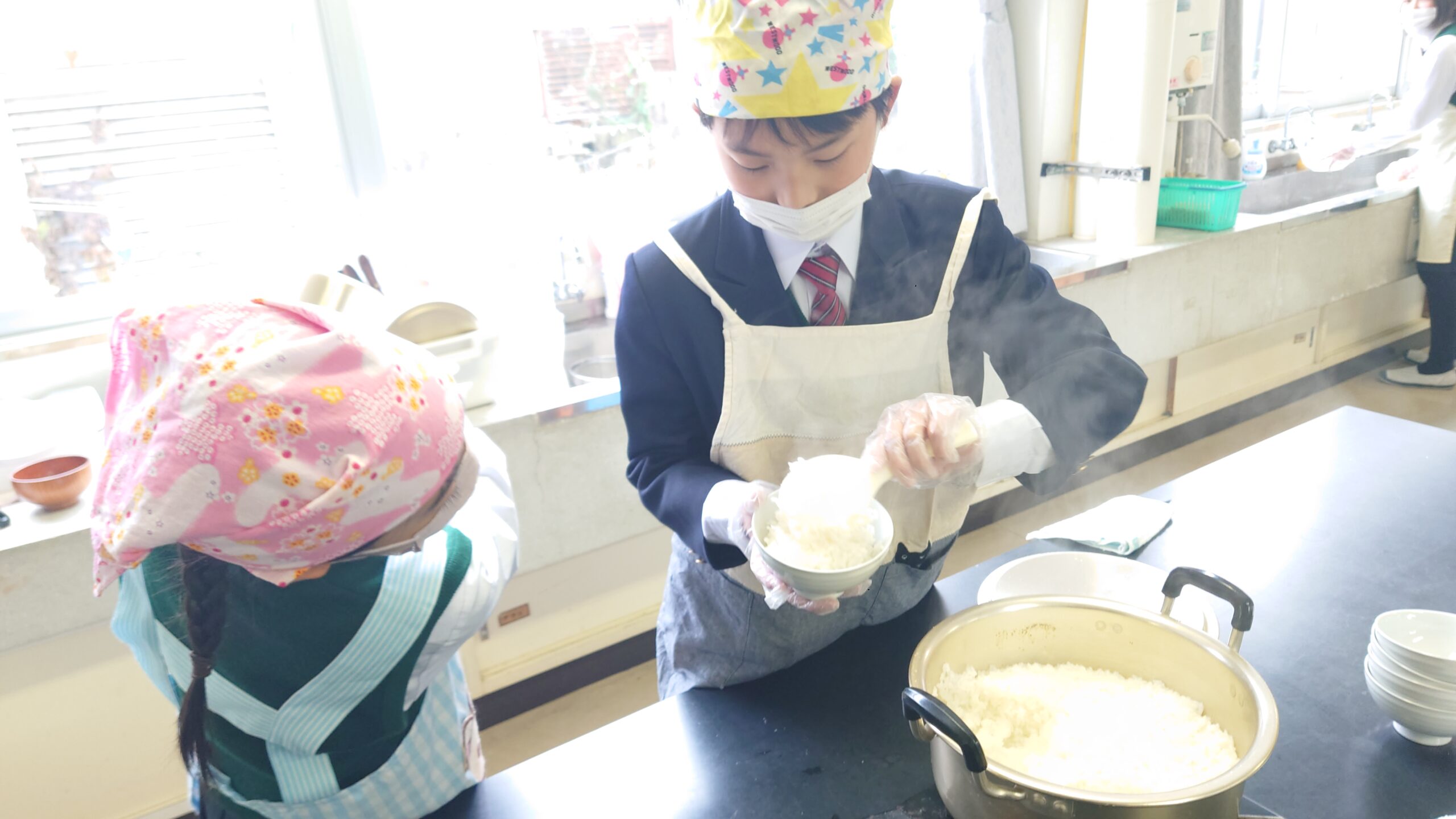 2022.12/16 育英っ子ブログ 5年生調理実習「食べて元気!ご飯とみそ汁」 今回は、米作り体験で収穫したお米を使ってご飯とみそ汁を作りました。 調理実習計画にそって、手分けして作業を進めていきます。 とても上手に出来上がりました。 何度もおかわりして、どの班もきれいに全部食べました。 ごちそうさまでした。 次の記事へ 一覧に戻る 前の記事へ