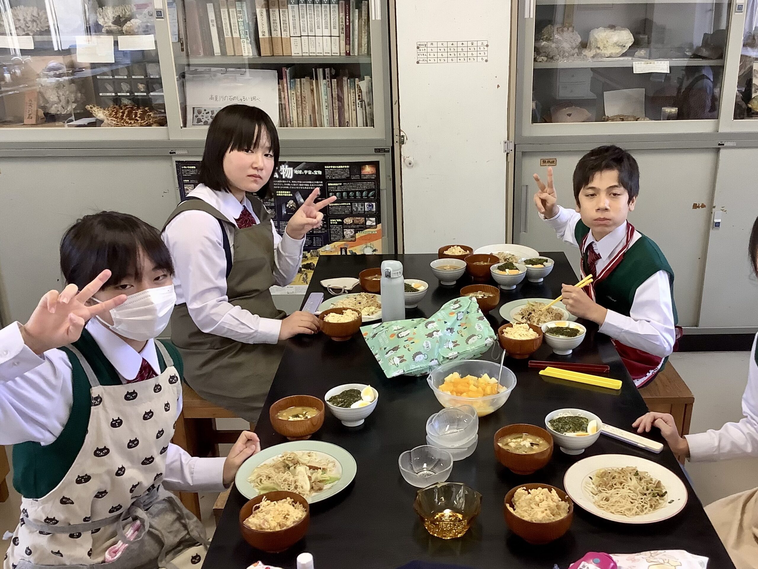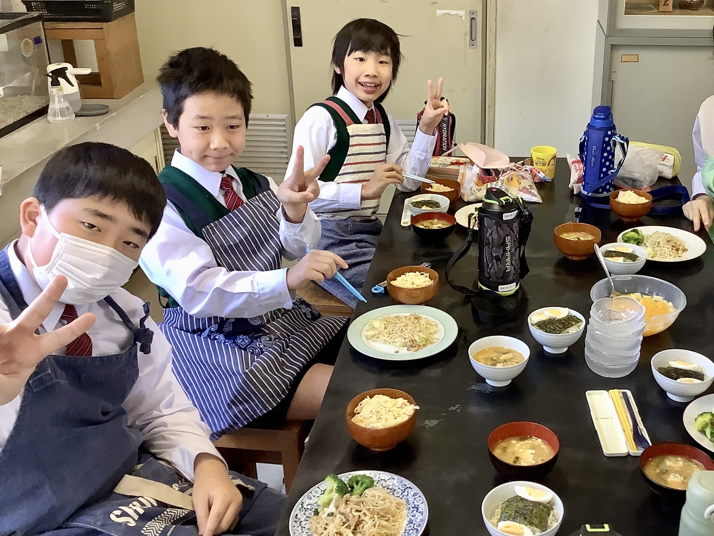 2022.12/19 育英っ子ブログ 6年生調理実習「アレンジインスタント麺」 家庭科の時間に考えたインスタント麺のレシピで調理実習をしました。投票で選ばれた3名のレシピを作りました。 調理実習計画にそって、手分けして作業を進めていきます。 とても上手に作ることが出来ました。 各班で作った3種類のラーメンを食べ比べしました。ごちそうさまでした。 次の記事へ 一覧に戻る 前の記事へ