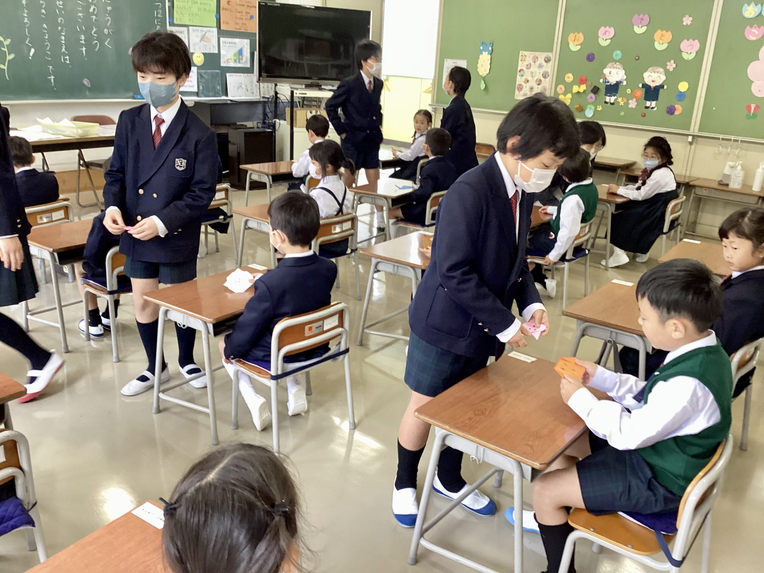 本校では6年生が1年生のお世話をするパートナー制を実施しています。初めてのパートナー対面に1年生は大喜びです。