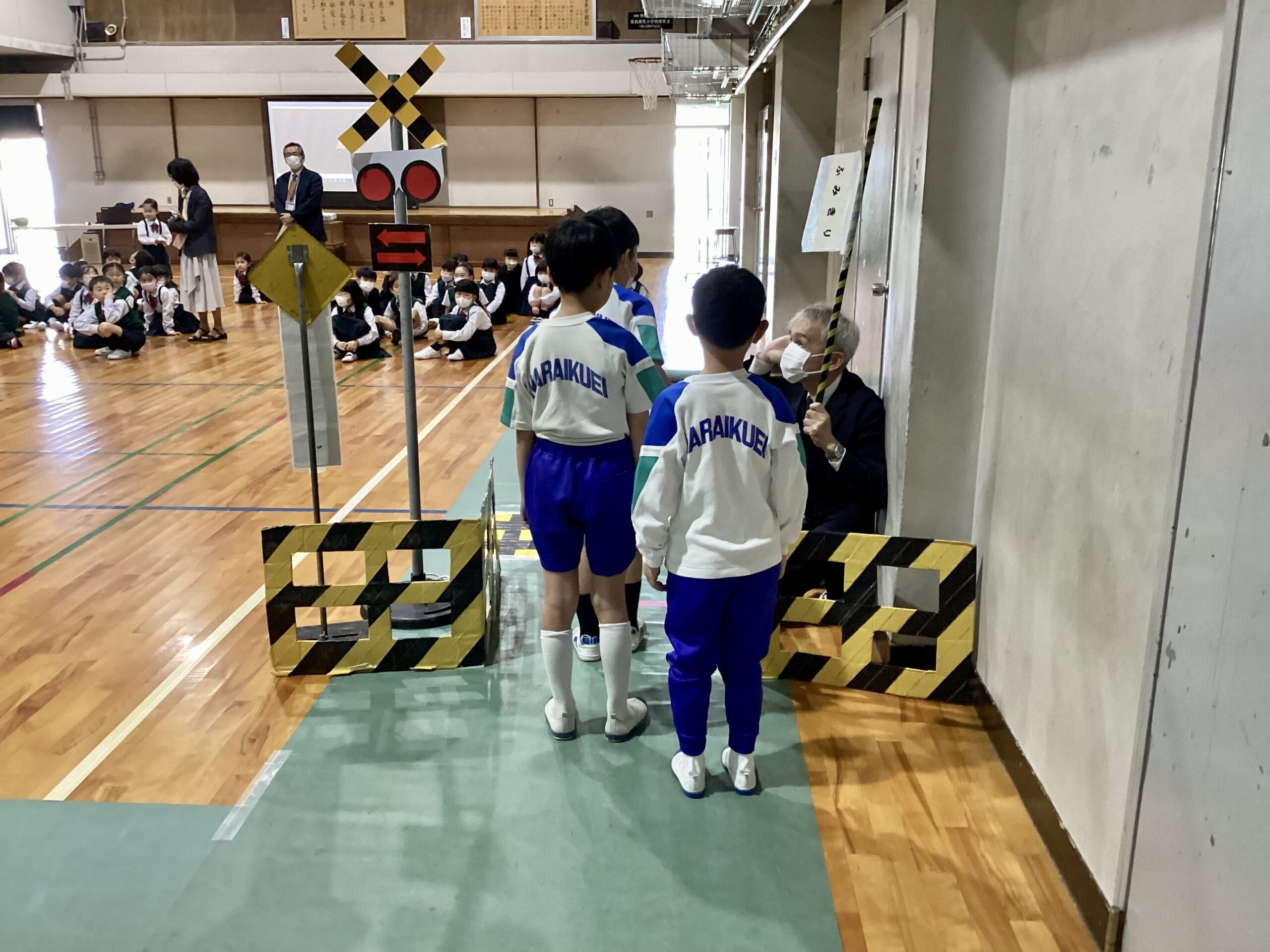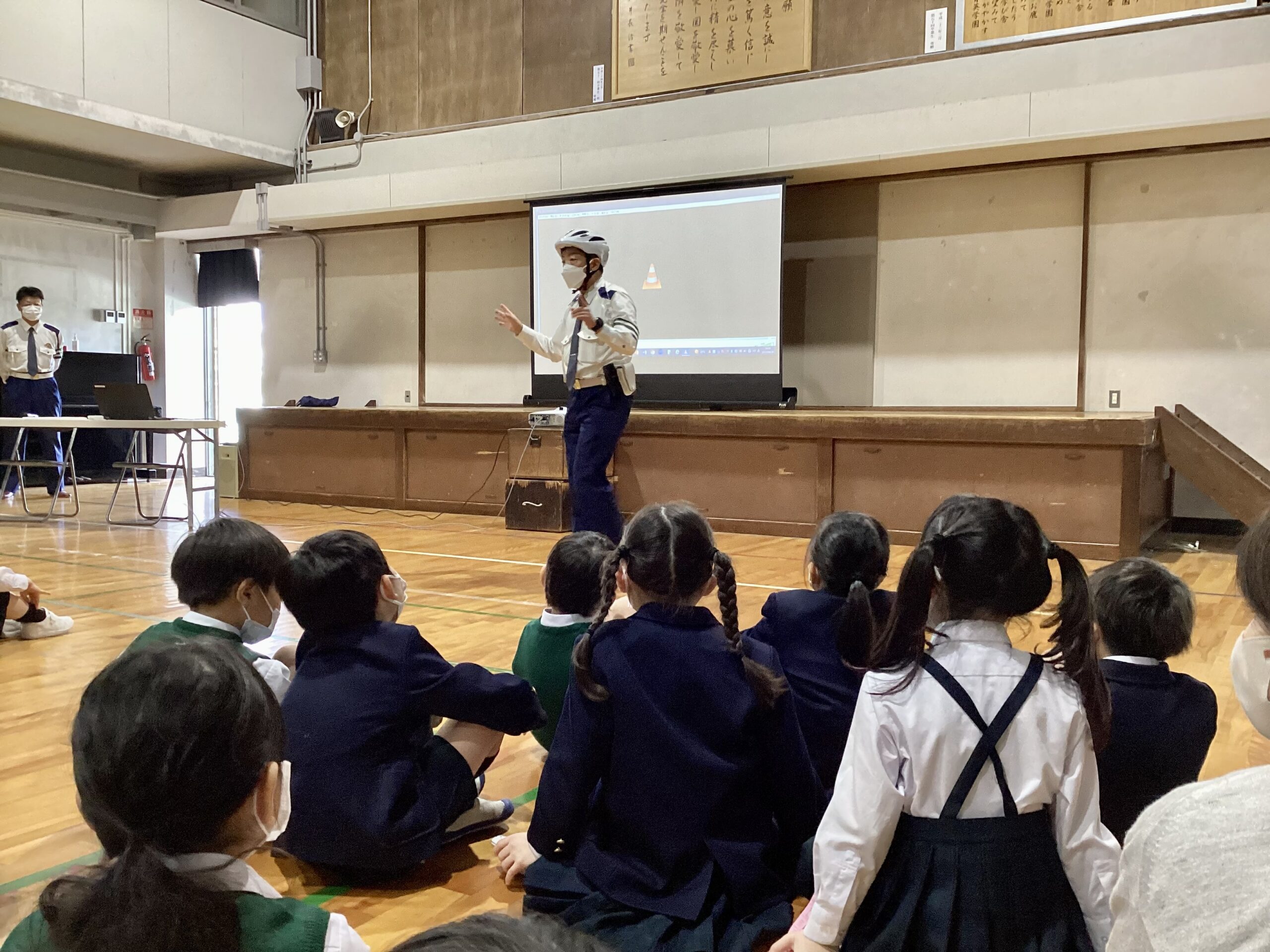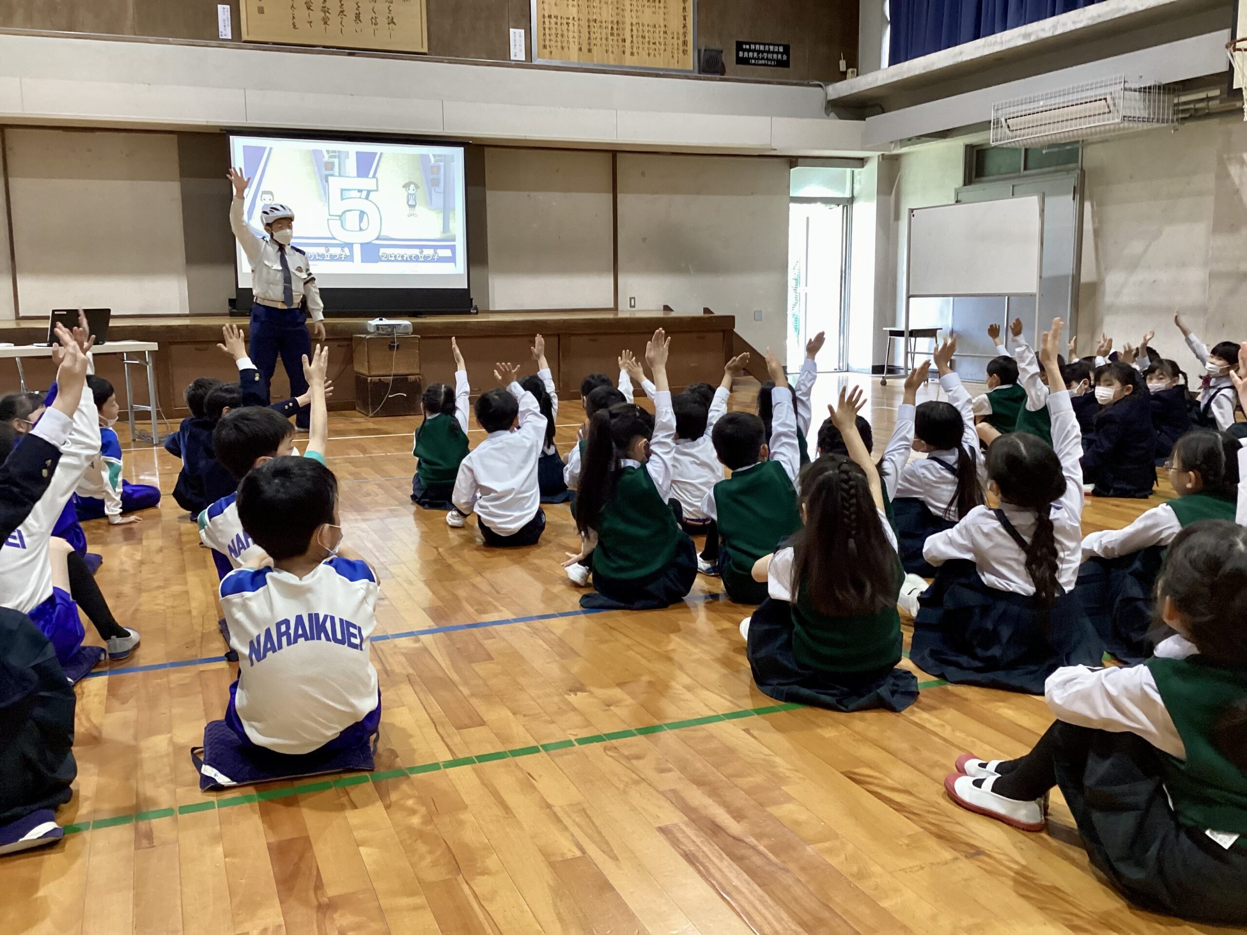 本日は奈良県奈良警察署の方々がゲスト・ティーチャーで来てくださり、交通ルールやマナーについて教えていただきました。