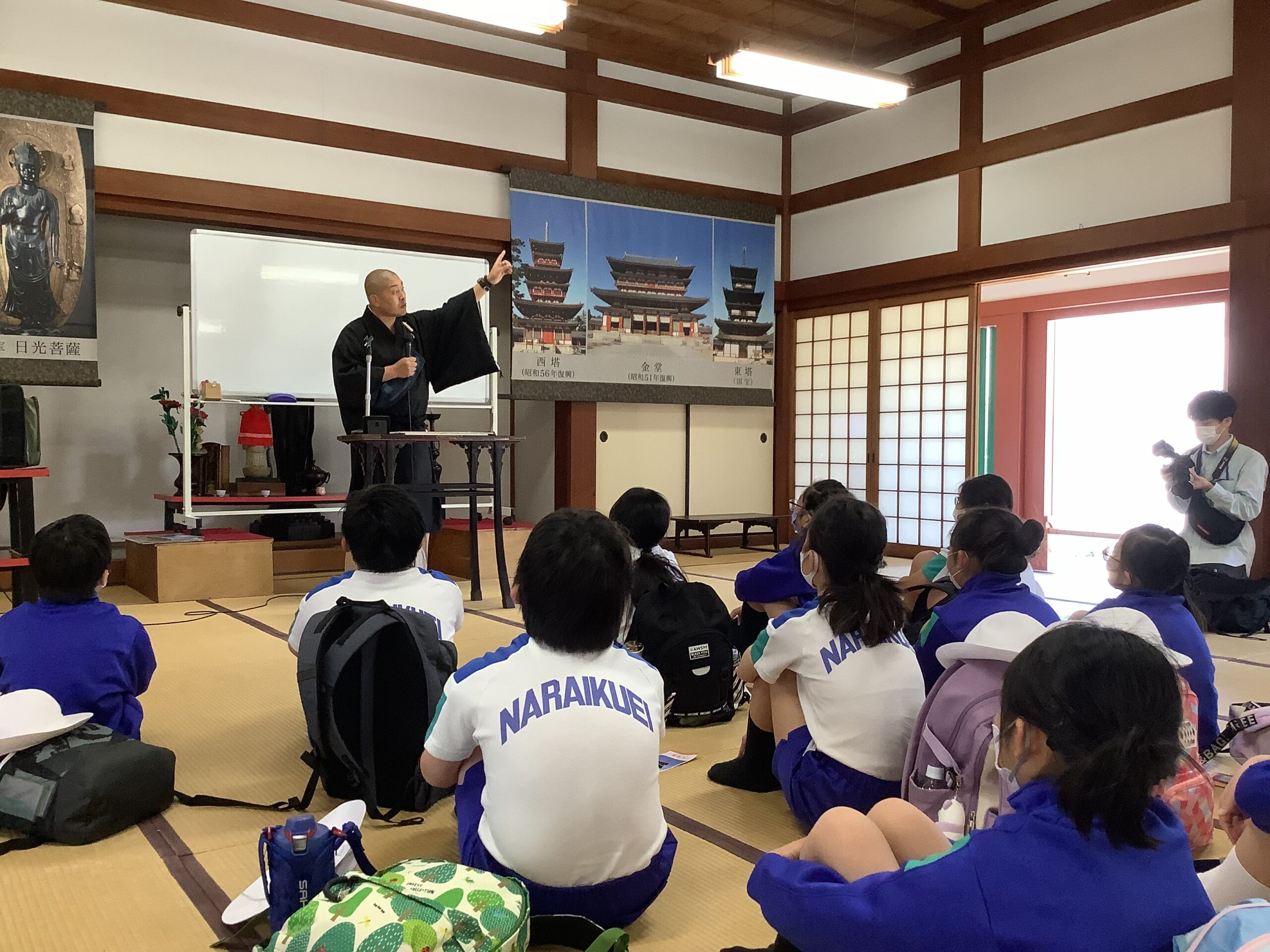 同じく世界遺産である唐招提寺は、鑑真和上によって設立されたお寺です。子ども達は薬師寺に続いて、迫力満点の仏様を拝みました。