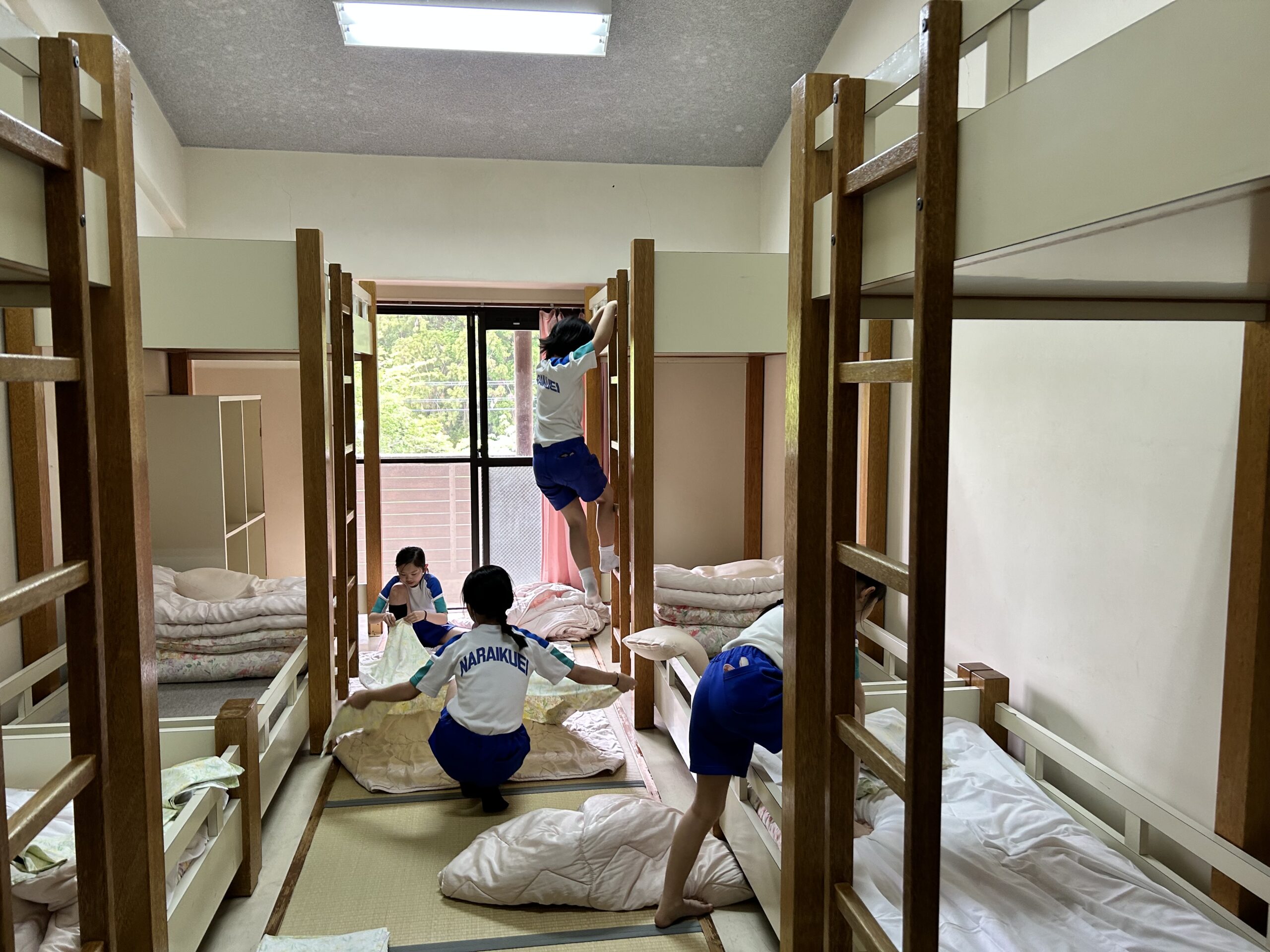 昼食後は部屋割りです。シーツ、枕カバーなど、自分たちで準備します。友達と協力してできました。