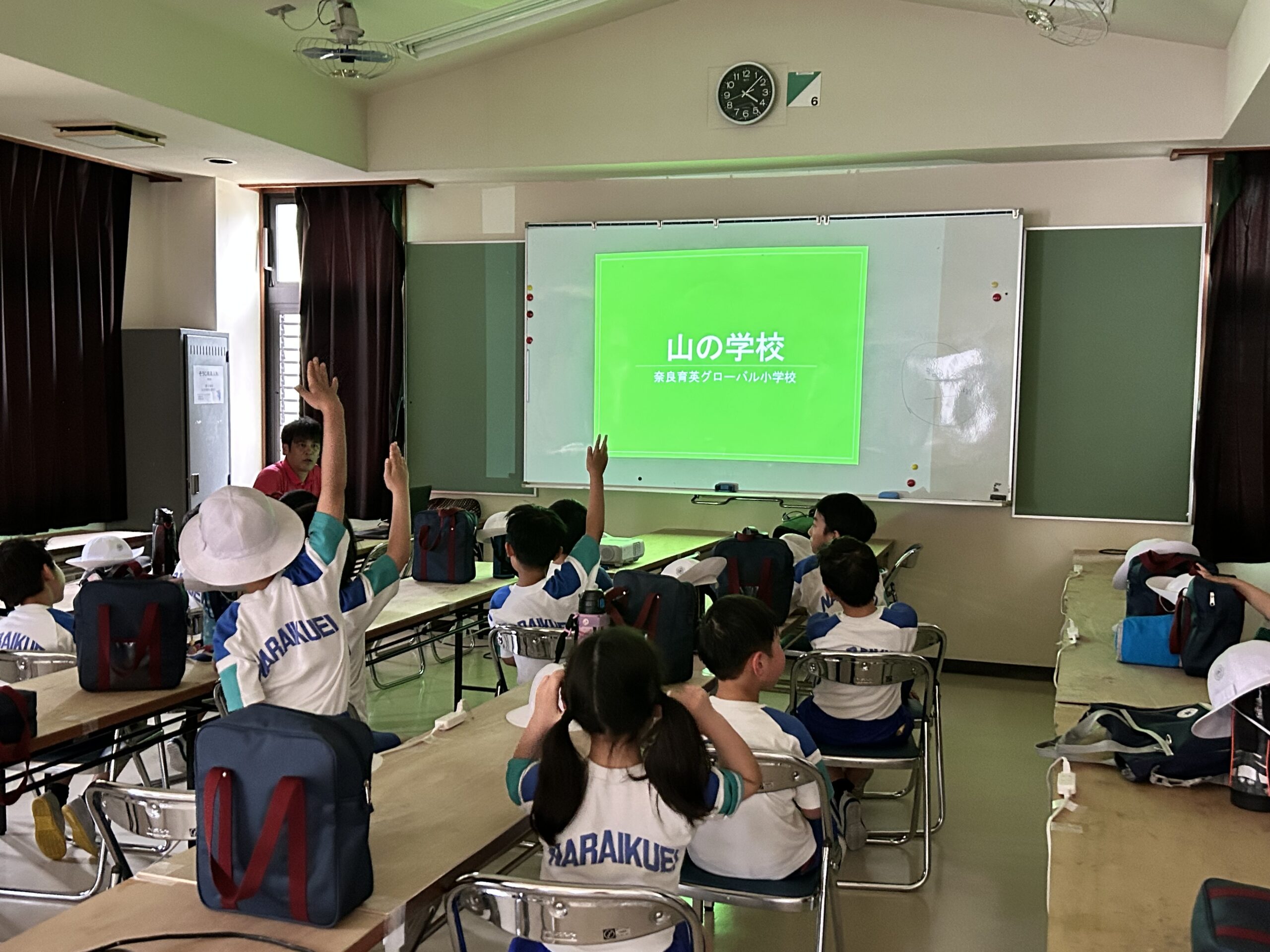 その間、3年生は歴史や自然のことなど、スライドを使って学習をしました。