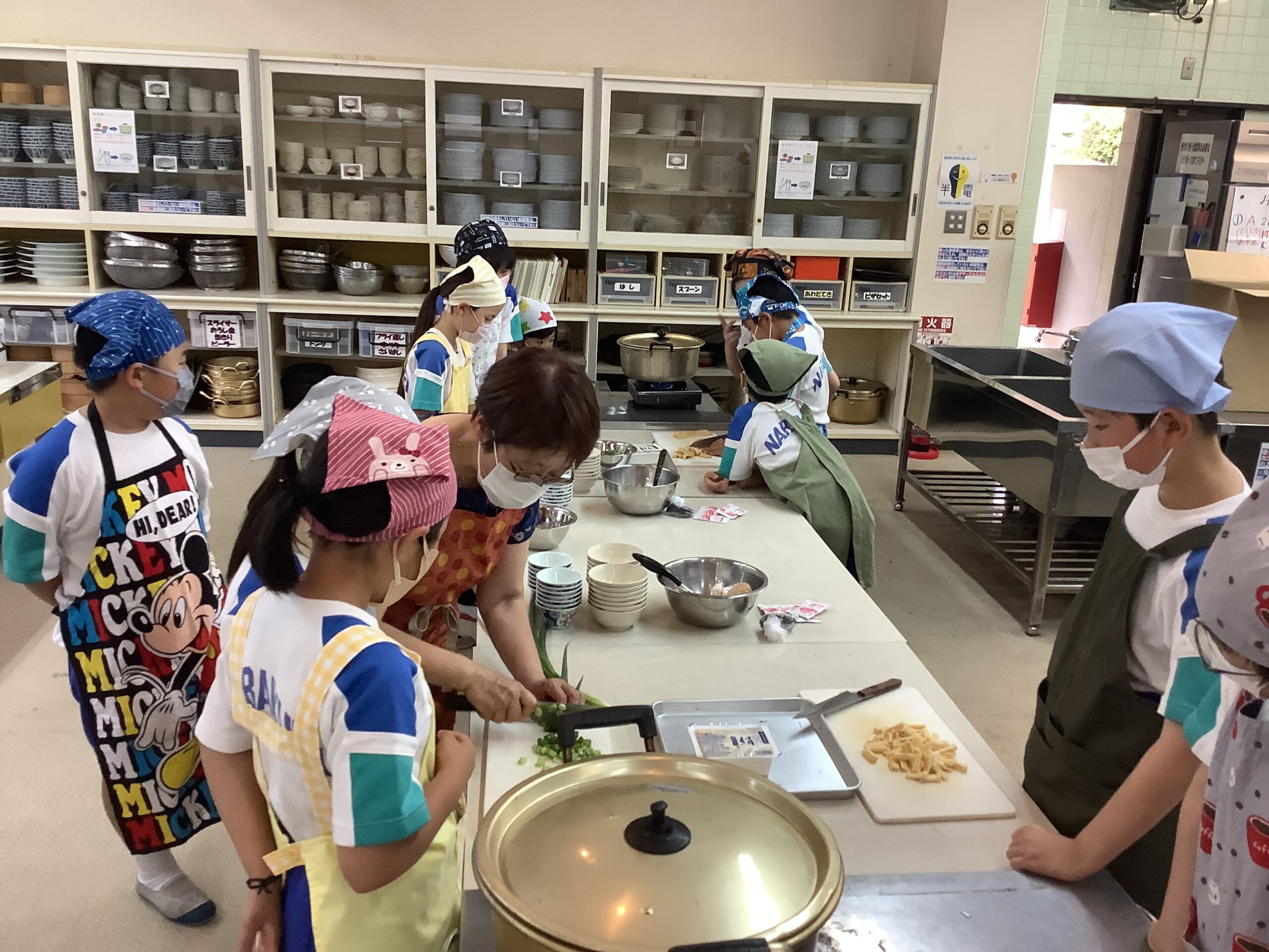 4年生は少し先にアスレチックを終えて、みんなのためにみそ汁作り。おいしくできるかな。