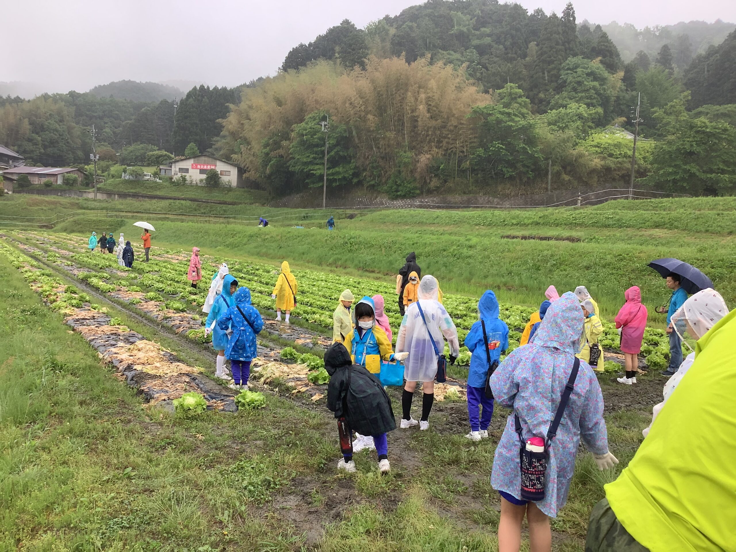 2日目はあいにくの雨でしたが、地元農家で朝どれレタスを収穫しました。