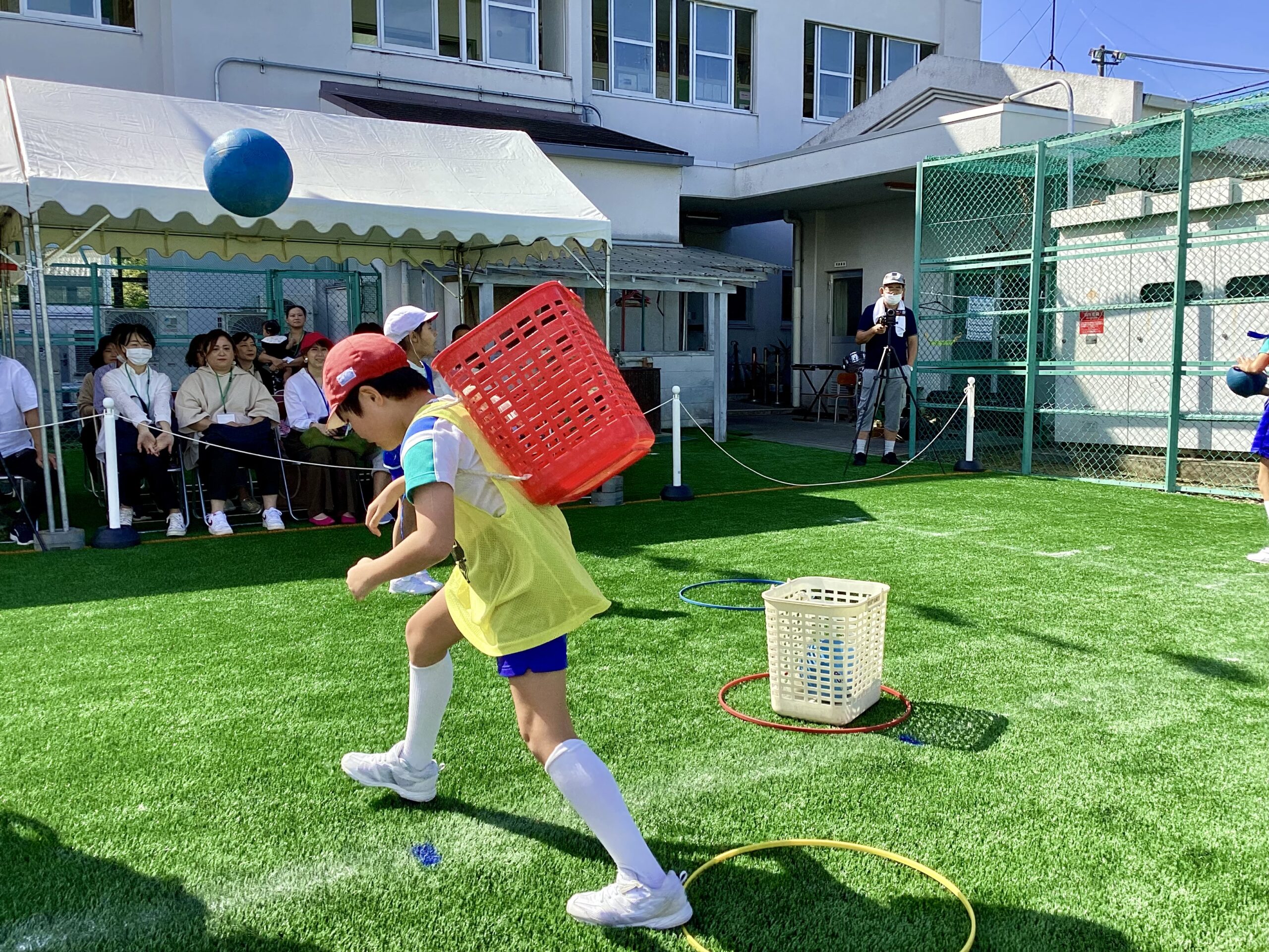高学年による仲良し対抗リレーは、缶積みや借り人、平均台と盛りだくさんです。各グループのチームワークを感じる種目となりました。